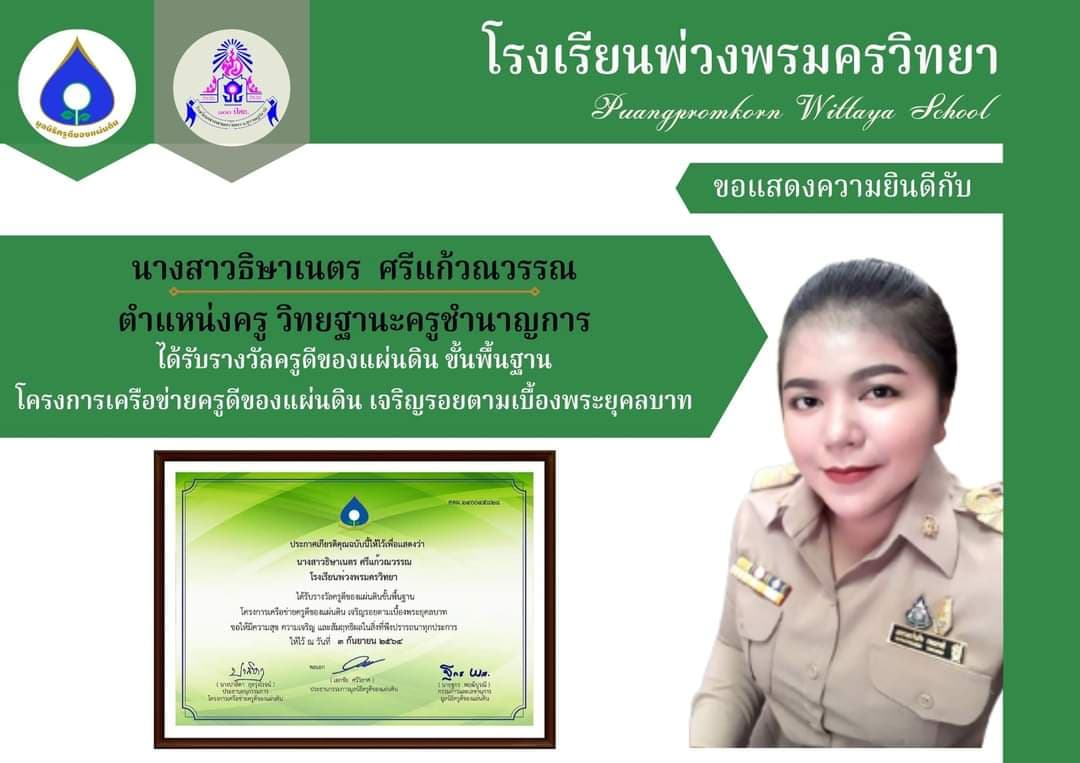 ชื่อผลงาน : รางวัลครูดีของแผ่นดินขั้นพื้นฐาน โครงการเครือข่ายครูดีของแผ่นดิน เจริญรอยตามเบื้องพระยุคลบาท ๒๕๖๔
