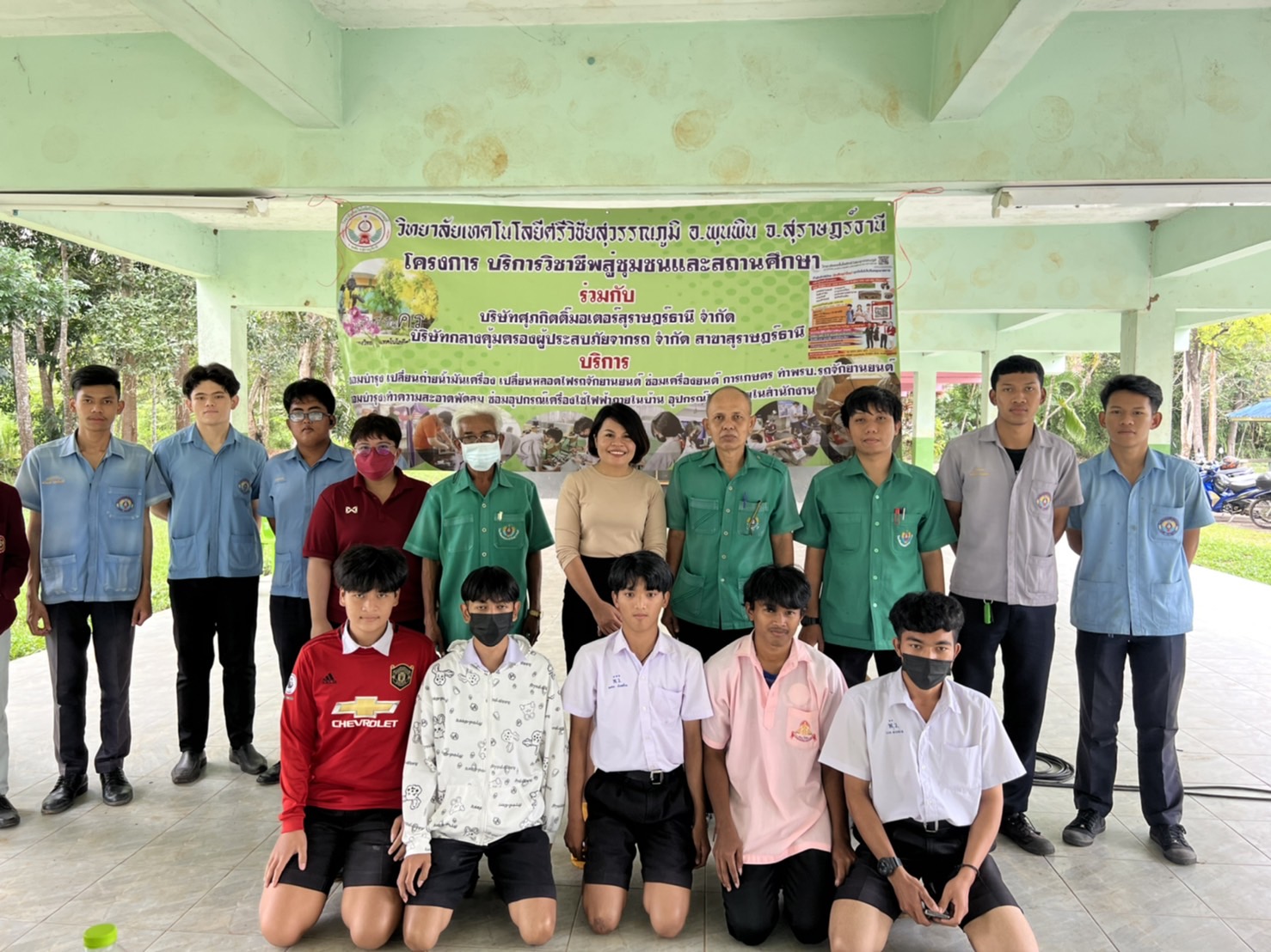 วิทยาลัยเทคโนโลยีศรีวิชัยสุวรรณภูมิ ออกหน่วยบริการ โครงการบริการวิชาชีพสู่ชุมชนและสถานศึกษาบูรณาการพี่สอนน้อง สร้างโอกาสให้นักเรียนที่มีความสนใจในวิชาชีพได้เรียนรู้ โดยทางวิทยาลัยจัดให้มีบริการตรวจสอบและซ่อมบำรุงรถจักรยานยนต์ อุปกรณ์เครื่องยนต์การเกษตรและตรวจสอบบำรุงรักษาอุปกรณ์เครื่องใช้ไฟฟ้าในอาคารสำนักงาน ณ อาคารธรรมชาติ โรงเรียนพ่วงพรมครวิทยา