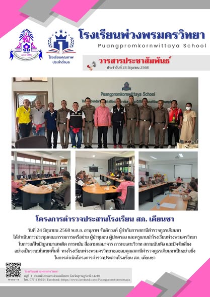 | วันที่ 24 มิถุนายน 2568 สถานีตำรวจภูธรเคียนซาได้ดำเนินโครงการตำรวจประสานโรงเรียน สภ. เคียนซา โดยจัดประชุมคณะกรรมการเครือข่าย ผู้นำชุมชน ผู้ปกครอง และครูแกนนำโรงเรียนพ่วงพรมครวิทยา ทางโรงเรียนพ่วงพรมครวิทยาขอขอบคุณเป็นอย่างยิ่ง |