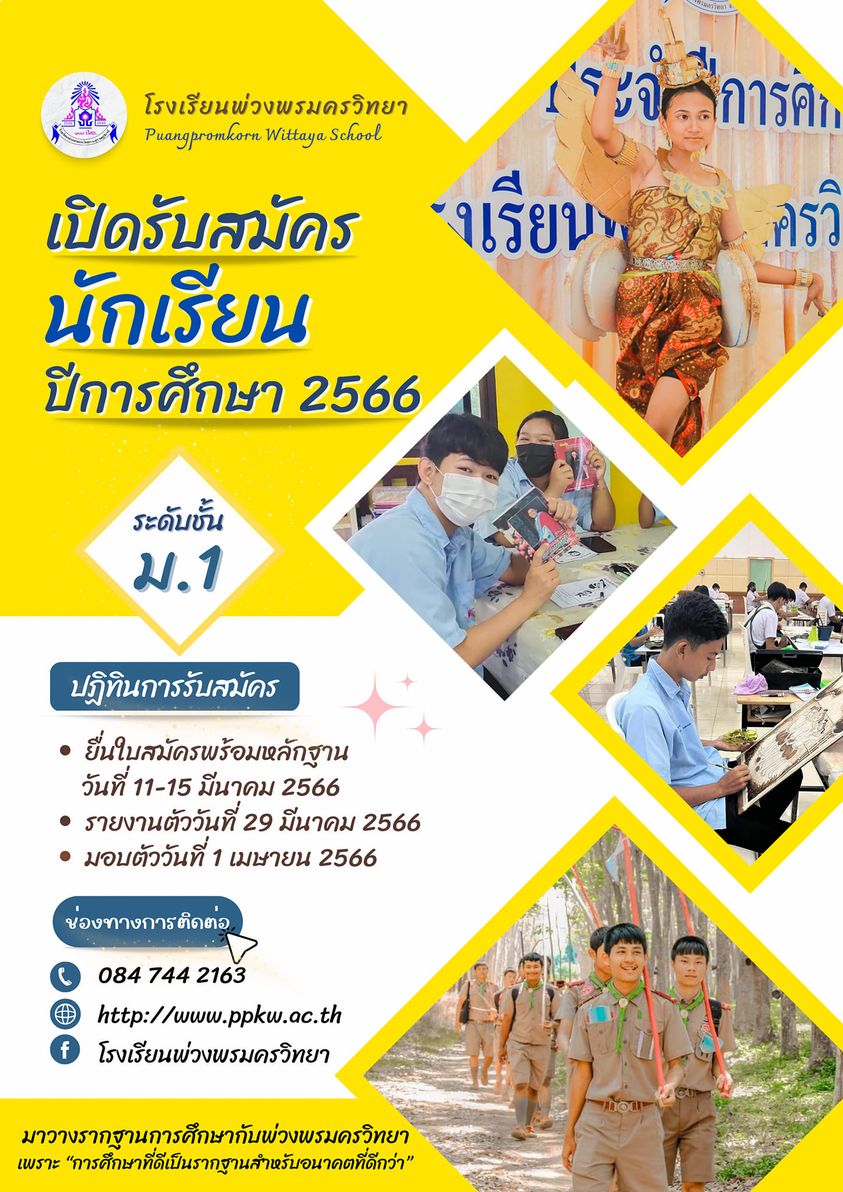การรับสมัครนักเรียน ประจำปีการศึกษา 2566 ชั้นมัธยมศึกษาปีที่ 1