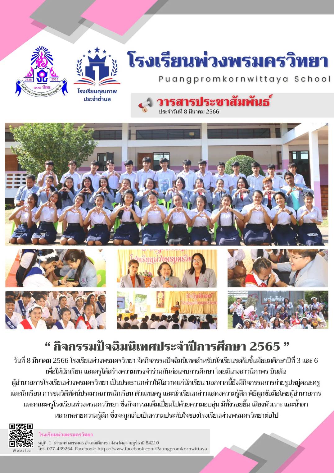 กิจกรรมปัจฉิมนิเทศสำหรับนักเรียนระดับชั้นมัธยมศึกษาปีที่ 3 และ 6 เพื่อให้นักเรียนและครู ได้สร้างความทรงจำร่วมกันก่อนจบการศึกษา