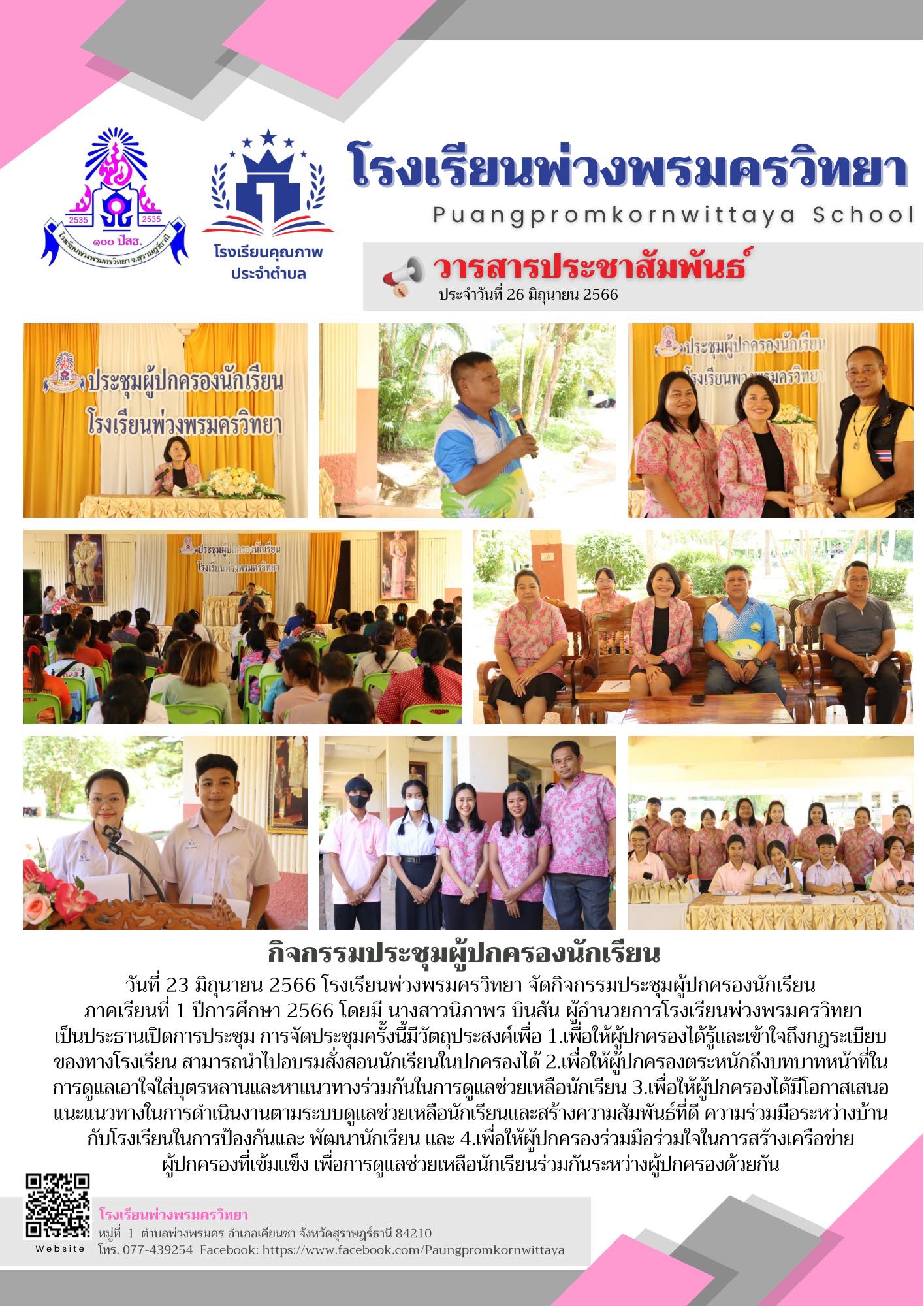 กิจกรรมประชุมผู้ปกครองนักเรียน ภาคเรียนที่ 1 ปีการศึกษา 2566
