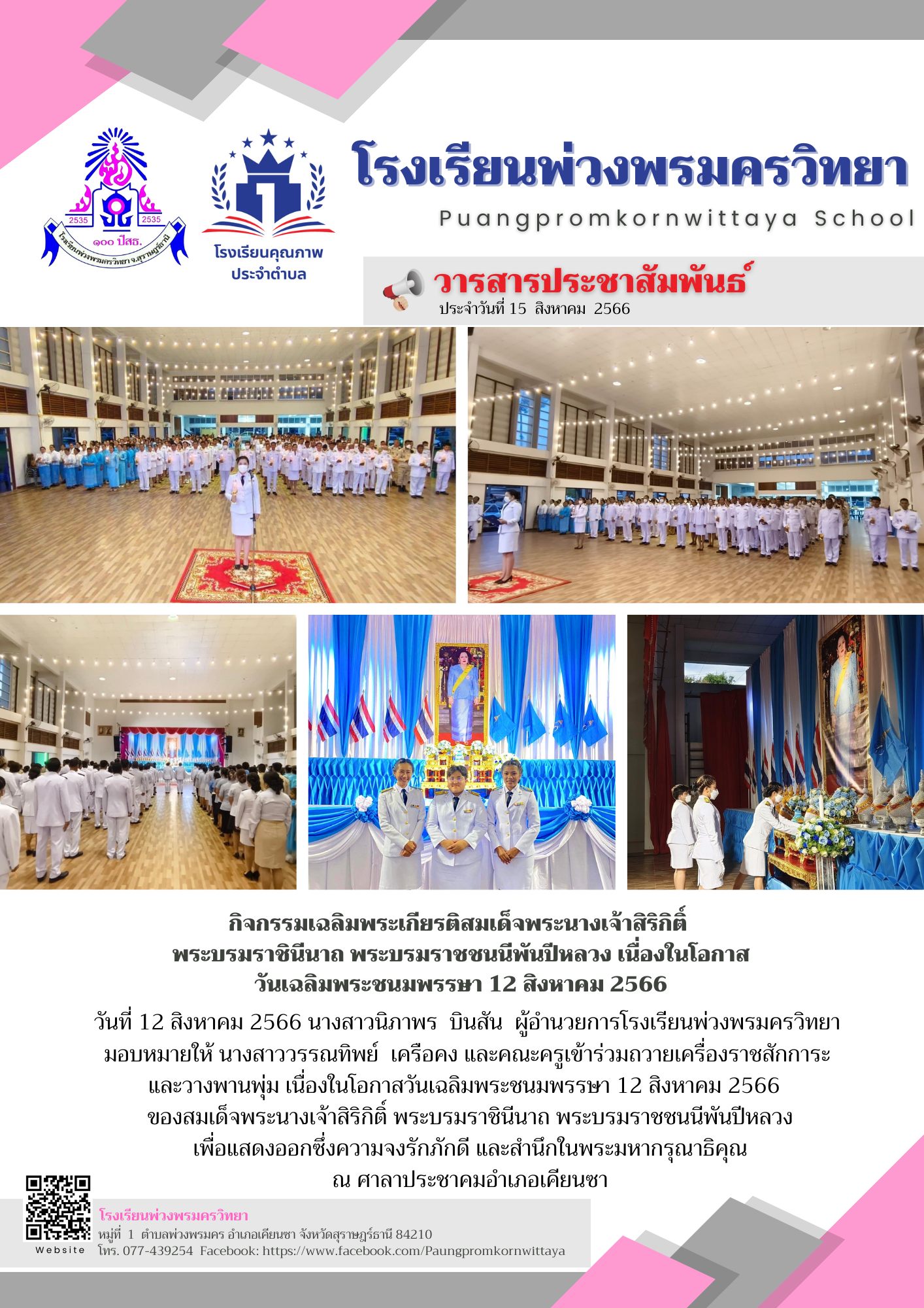 คณะครูเข้าร่วมถวายเครื่องราชสักการะและวางพานพุ่ม เนื่องในโอกาสวันเฉลิมพระชนมพรรษา 12 สิงหาคม 2566 ของสมเด็จพระนางเจ้าสิริกิติ์ พระบรมราชินีนาถ พระบรมราชชนนีพันปีหลวง เพื่อแสดงออกซึ่งความจงรักภักดี และสำนึกในพระมหากรุณาธิคุณ ณ ศาลาประชาคมอำเภอเคียนซา